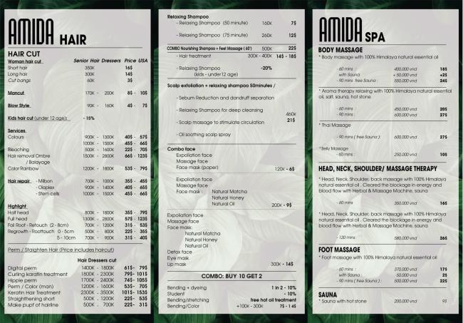 Amida là một dịch vụ tóc nam nữ và spa chuyên nghiệp, với mục tiêu đem lại trải nghiệm thư giãn và đẳng cấp cho khách hàng của mình. Với không gian thiết kế tinh tế và hiện đại, cùng với đội ngũ nhân viên giàu kinh nghiệm và tay nghề cao, Amida cam kết mang đến cho khách hàng những trải nghiệm chất lượng nhất.